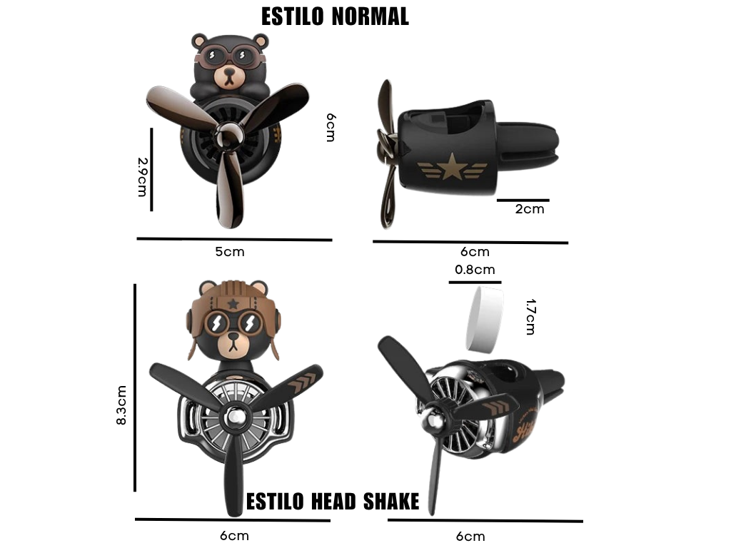 Este original ambientador con diseño de osito montado en una avioneta no solo perfuma tu vehículo, sino que también decora con encanto. Las aspas giratorias dispersan el aroma de forma uniforme al ritmo del aire acondicionado o la ventilación.