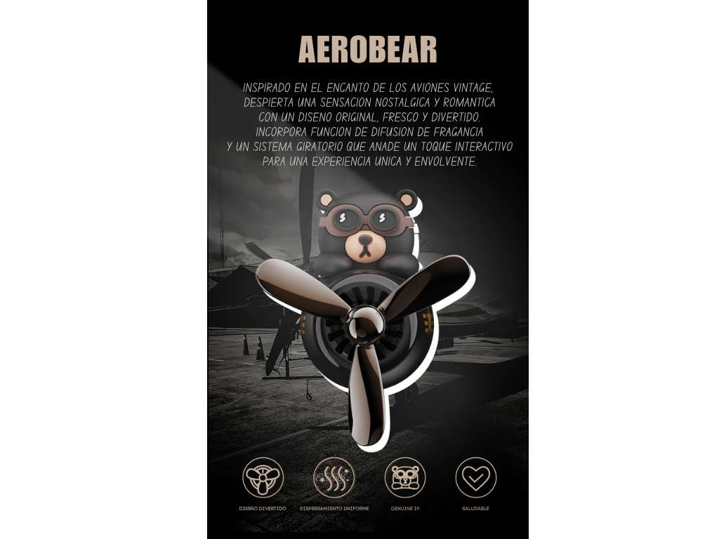 INSPIRADO EN EL ENCANTO DE LOS AVIONES VINTAGE, DESPIERTA UNA SENSACIÓN NOSTÁLGICA Y ROMÁNTICA CON UN DISEÑO ORIGINAL, FRESCO Y DIVERTIDO. INCORPORA FUNCIÓN DE DIFUSIÓN DE FRAGANCIA Y UN SISTEMA GIRATORIO QUE AÑADE UN TOQUE INTERACTIVO PARA UNA EXPERIENCIA ÚNICA Y ENVOLVENTE.